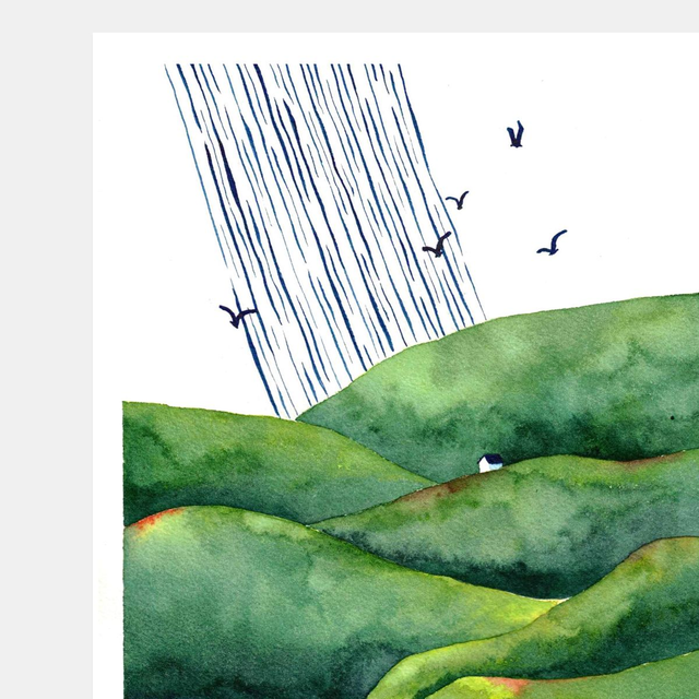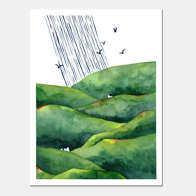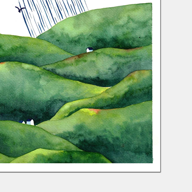 "Averse d'automne" - Paysage poétique peint à l'aquarelle