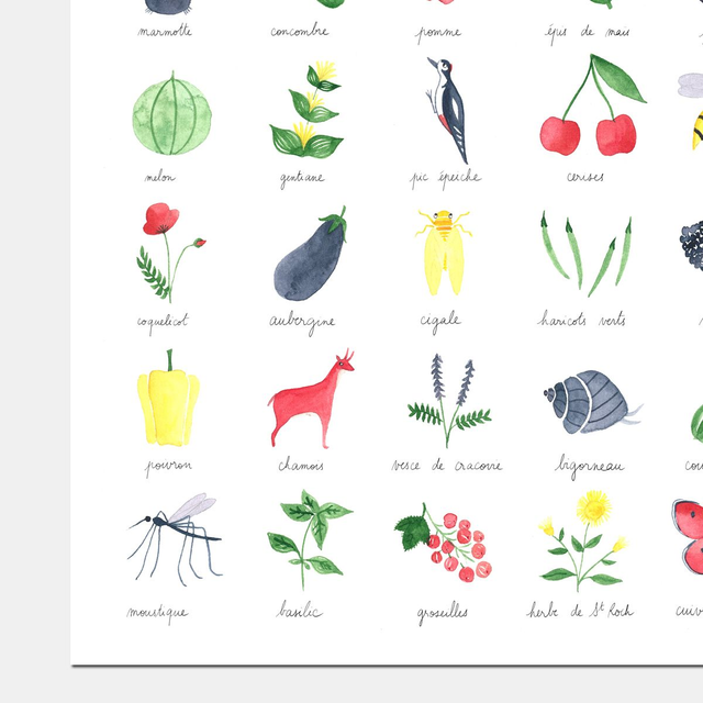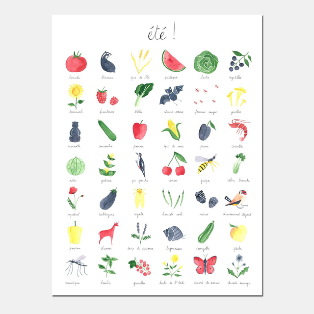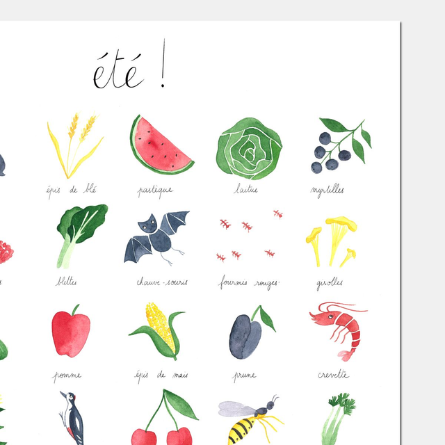 "Été" 30x40 - Imagier peint à l'aquarelle