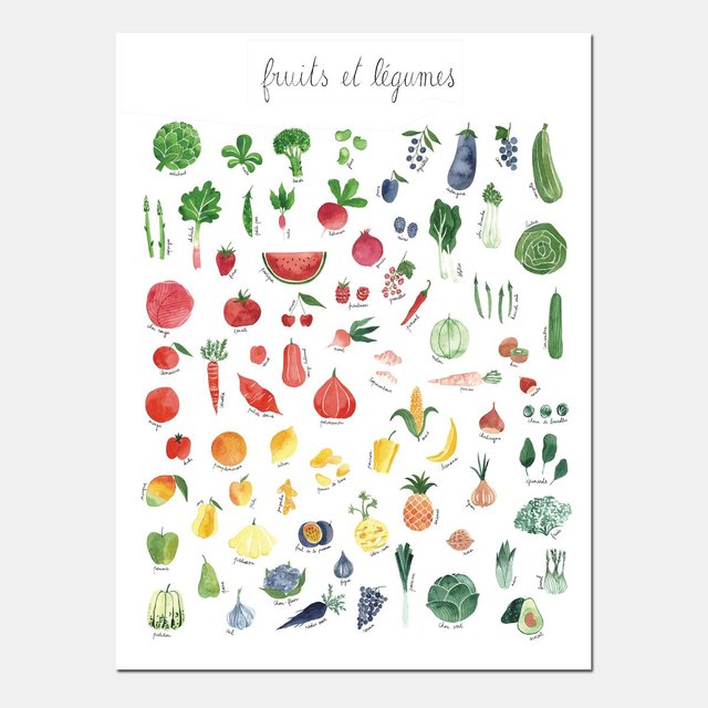 "Fruits et légumes 30x40 - Imagier peint à l'aquarelle