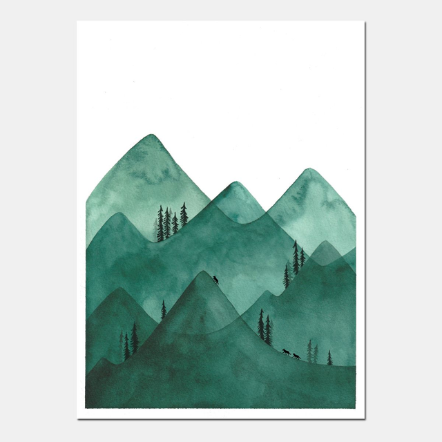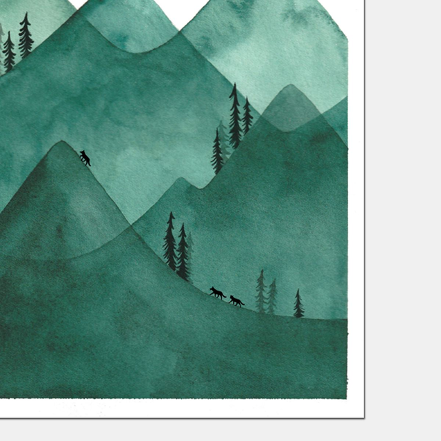 "Les loups " est une illustration peinte à l'aquarelle, reproduite ici sous forme d'affiche.
