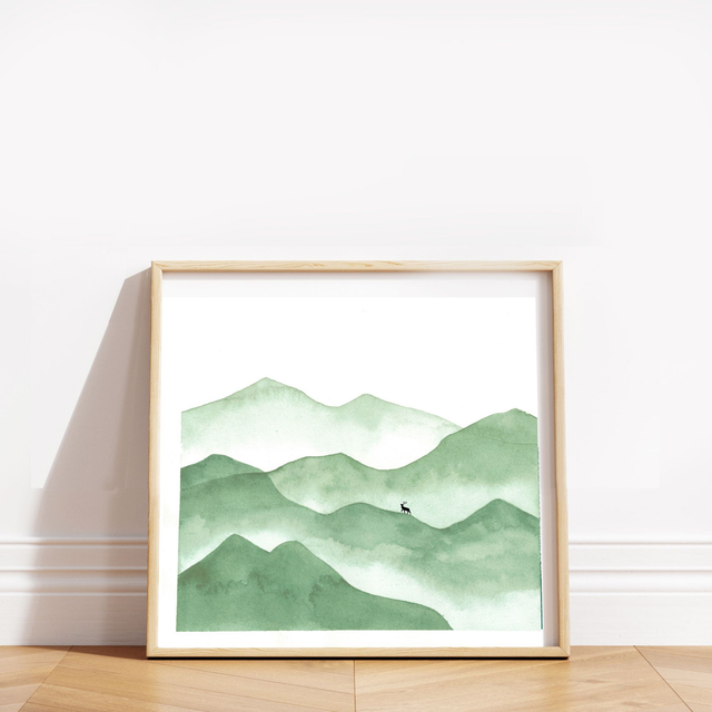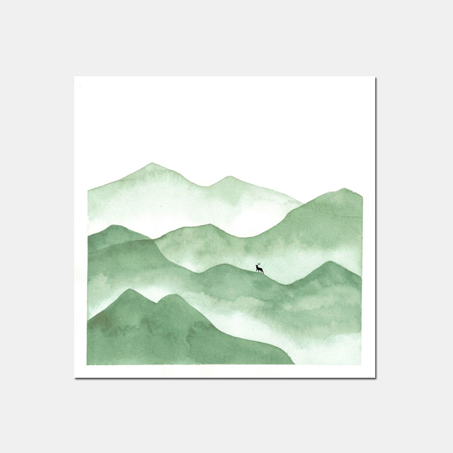"Le cerf" - Paysage poétique peint à l'aquarelle