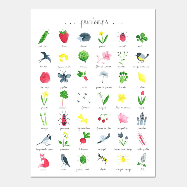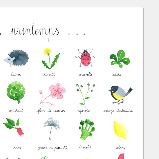 Petite collection des animaux, legumes, plantes et autres choses que l'on peut trouver au printemps.